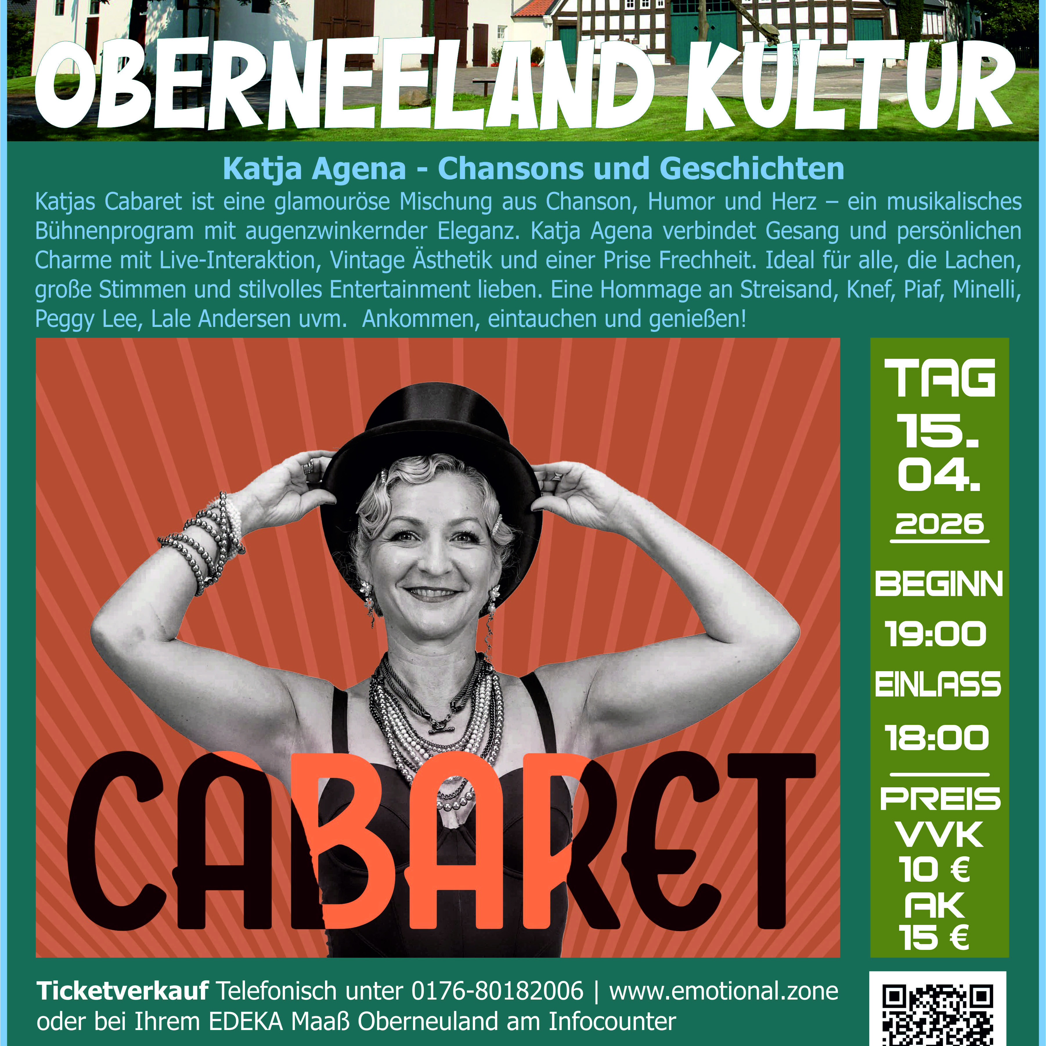 Katjas Cabaret ist eine glamouröse Mischung aus Chanson, Humor und Herz – ein musikalisches Bühnenprogram mit augenzwinkernder Eleganz. Katja Agena verbindet Gesang und persönlichen Charme mit Live-Interaktion, Vintage Ästhetik und einer Prise Frechheit. Ideal für alle, die Lachen, große Stimmen und stilvolles Entertainment lieben. Eine Hommage an Streisand, Knef, Piaf, Minelli, Peggy Lee, Lale Andersen uvm. Ankommen, eintauchen und genießen!