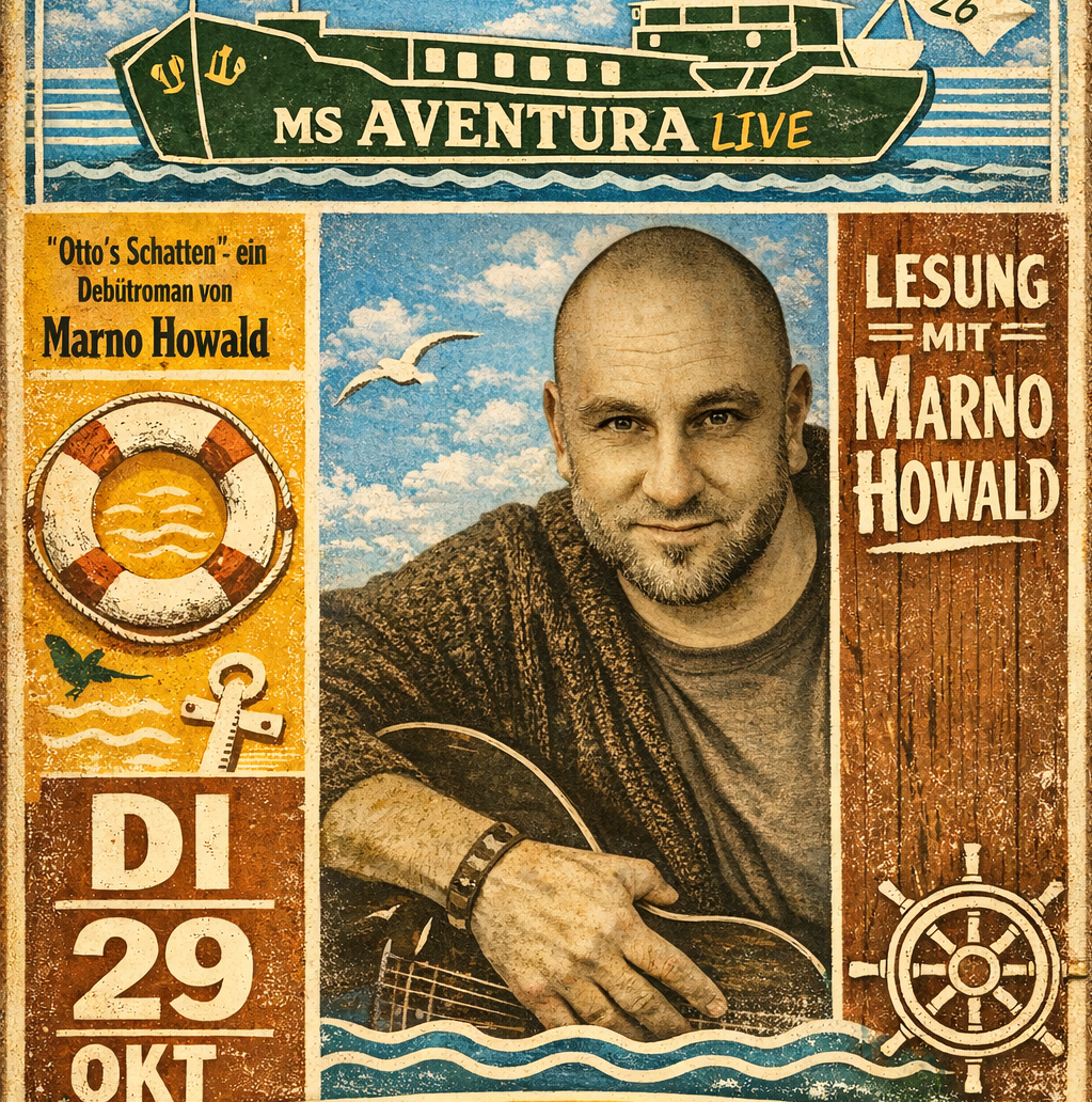 Lesung & Musik „Ottos Schatten“ ein Debütroman von Marno Howald. Einem Säufer und Schläger, der Otto immer wieder eine beachtliche Anzahl blauer Flecke auf den Leib heftete, die wochenlang nicht verheilten. Ottos Leben ist die Geschichte eines Jungen, der sich schwor, die eigene Schwester zu schützen, alles Böse zu ertragen und von ihr fernzuhalten und zu erdulden, was sie niemals erfahren durfte.