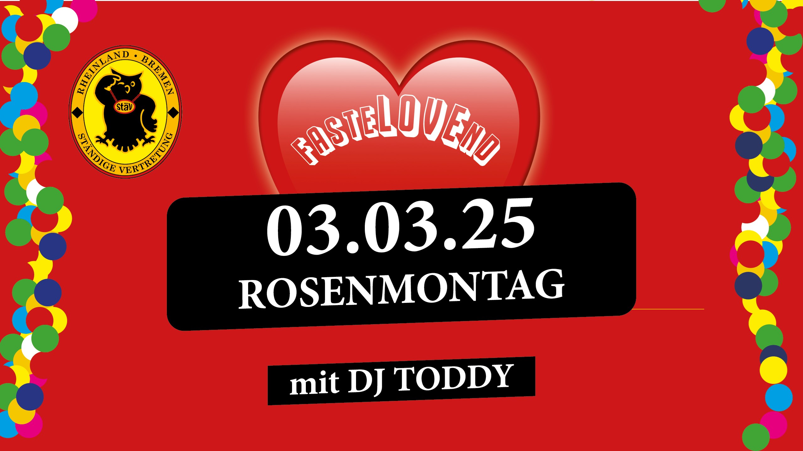 Am 03.03.2025 feiern wir in der ständigen Vertretung Bremen | StäV gemeinsam gemeinsam mit DJ TODDY wieder den Rosenmontag.