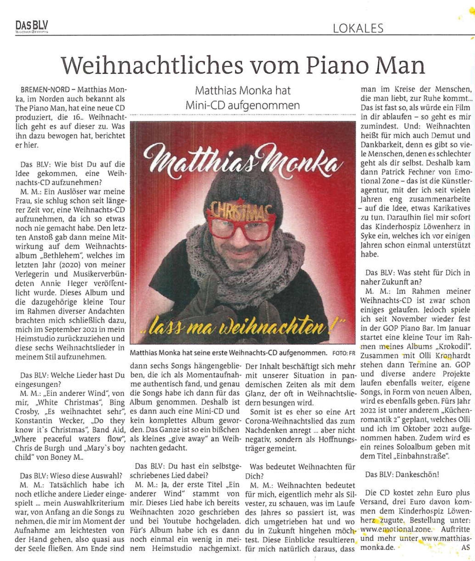 Tief verwurzelt in Bremen, da muss es sein, der eigenen Stadt einen Song zu widmen! Der Bremer Musiker Matthias Monka widmet seine neue Single „BREMEN, meine Stadt“ seiner Geburts- und Wahlheimat – der wunderschönen Hansestadt Bremen! 🌟 Bremen, mit seinen historischen Gassen, dem berühmten Marktplatz, der stolzen Roland-Statue und dem maritimen Flair an der Weser, ist mehr als nur eine Stadt – sie ist ein Lebensgefühl. In diesem Song feiert Matthias Monka genau dieses einzigartige Ambiente und lädt jeden Bremer und jede Bremerin ein, gemeinsam zu tanzen, zu feiern und die Liebe zu ihrer Stadt laut spürbar zu machen. Der Track entstand in enger Zusammenarbeit mit Produzent und Co-Autor Jan Schütz, der gemeinsam mit Matthias Monka den Sound und Text geschaffen hat. Das Video zum Song wurde ebenfalls von Jan Schütz liebevoll umgesetzt. Lasst uns gemeinsam die Stadt zum Beben bringen – Bremen, meine Stadt!