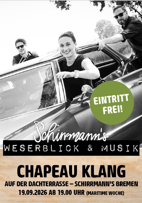 | 2026 | Schirrmann´s Weserblick& Musik 2026 | SA | 19.09.2026 | Chapeau Klang zur maritimen Woche |